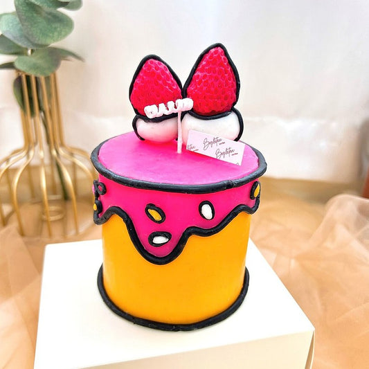 2D手繪風蛋糕造型香氛蠟燭 - 高彩度士多啤梨款