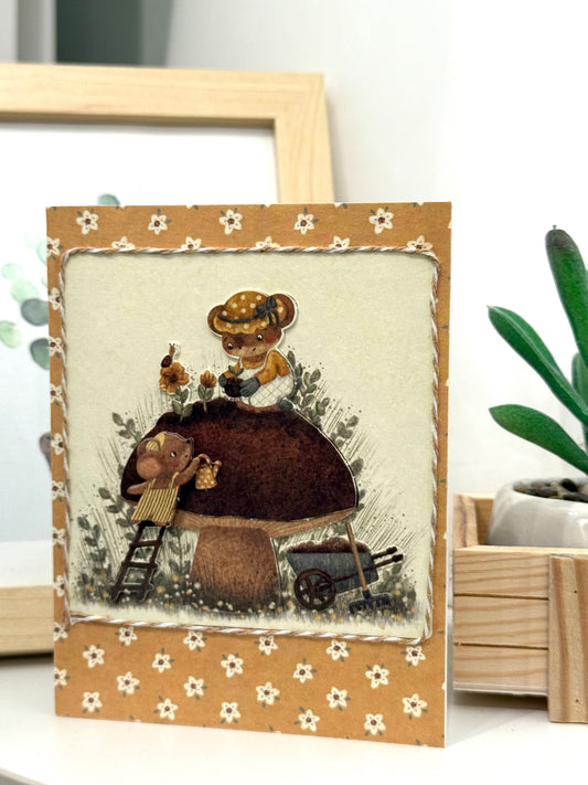 【手作心意卡】樹籬旁的小動物系列萬用卡 - 澆水的小老鼠