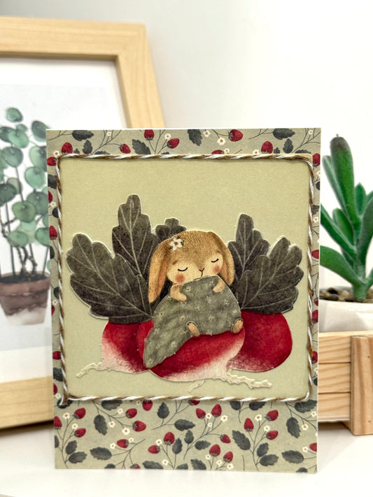 【手作心意卡】樹籬旁的小動物系列萬用卡 - 睡覺中的兔子小姐