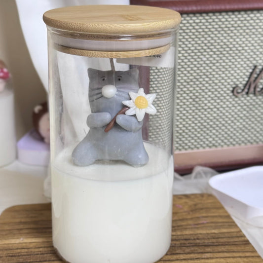 手工蠟燭✨浪漫捧花小貓蠟燭杯
