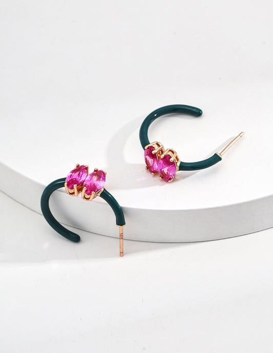 Color Contra Sterling Silver Earring with Zircon & Drip Glaze