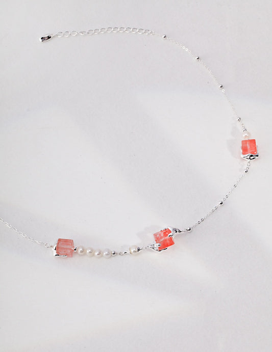 S925 Silver Vintage Natural Pearl & Red Crystal Bead Bracelet