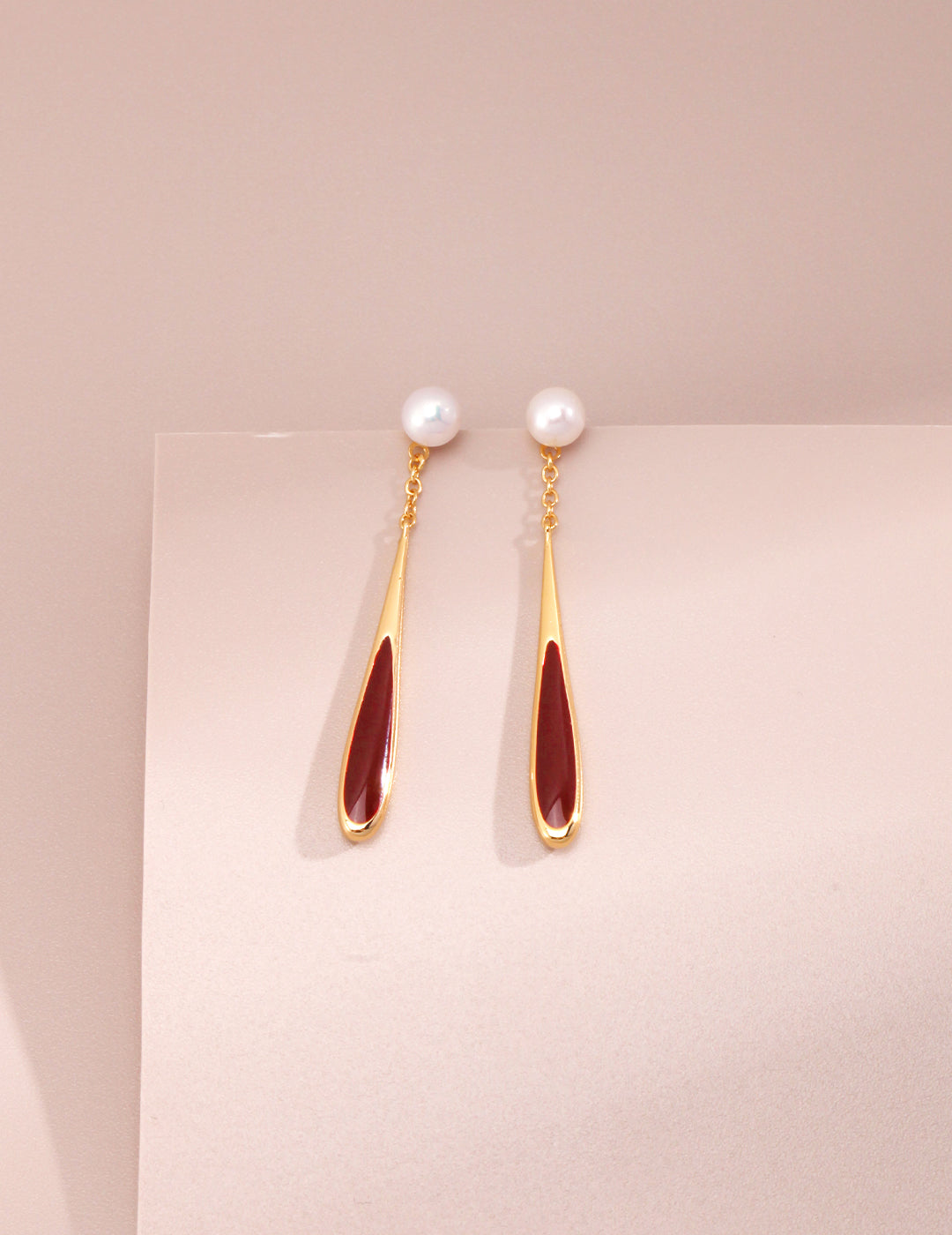 Moonlit Treasure S925 Silver Red Oil Drop Earrings – Minimalist Waterdrop Design