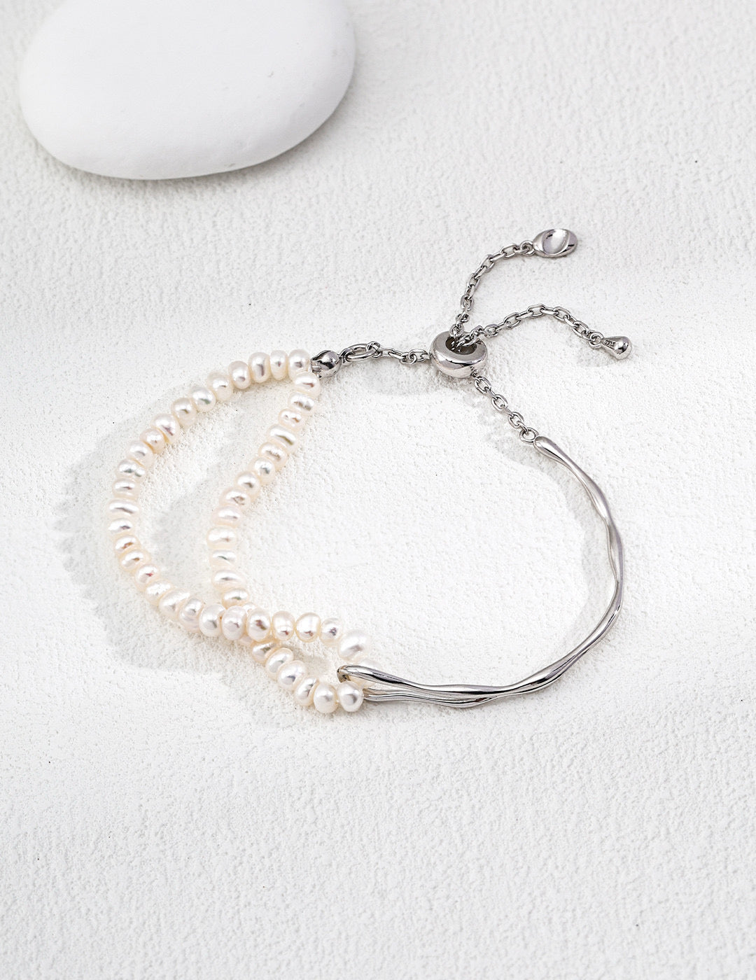 Moonlit Treasure Whisper Pearl Bracelet – S925 Silver with Natural Freshwater Pearls