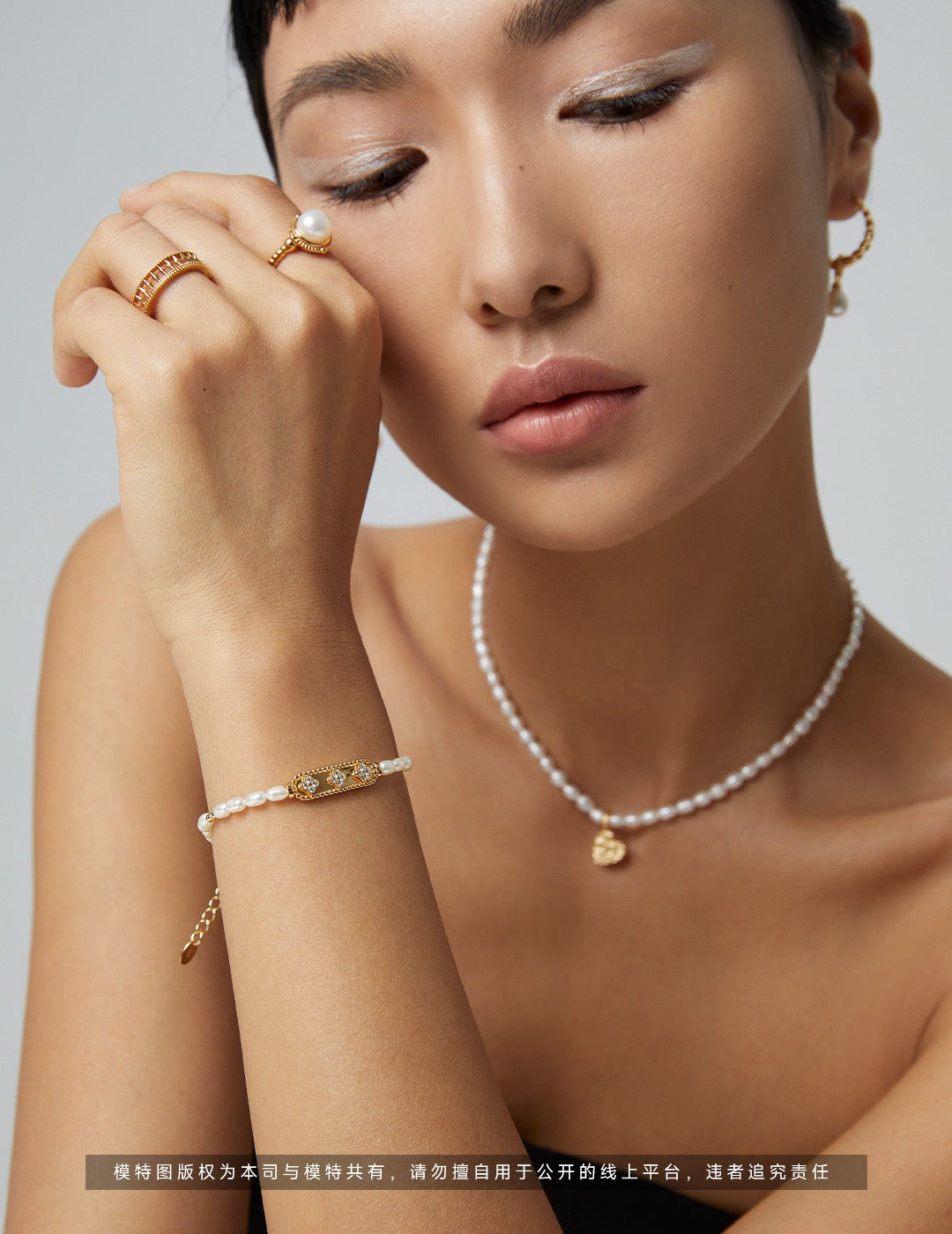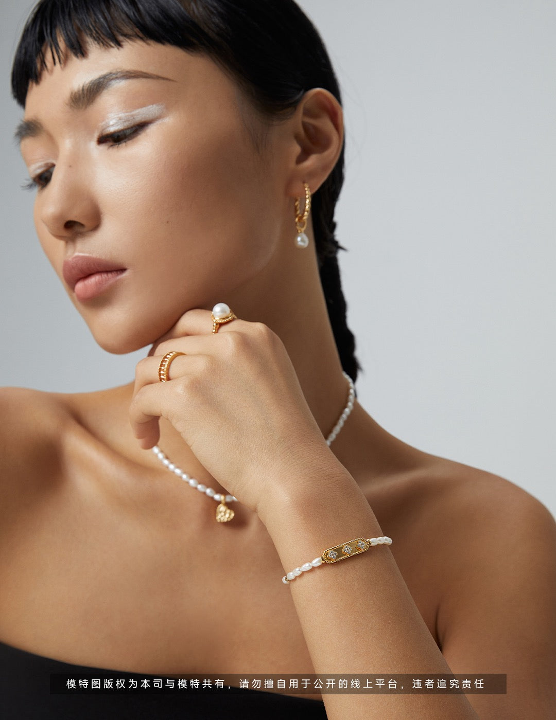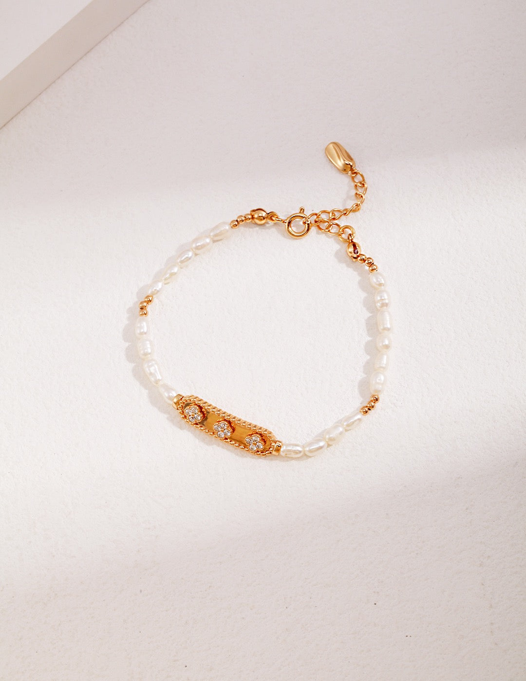 Made from S925 silver, natural pearls, and cubic zirconia, this bracelet features a vintage gold color. The chain is approximately 16cm long with an additional 3cm extension, 7mm in width, and the pearls are about 3.5mm each.