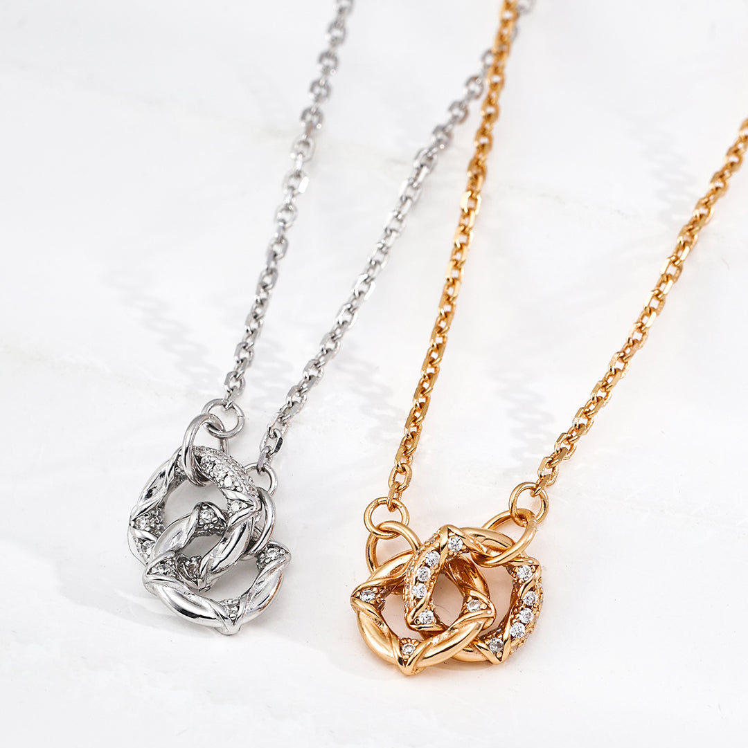 這款夢幻編織項鍊採用精巧的金屬編織設計,有銀色和金兩種款式可選,圓形吊墜上鑲嵌著閃耀的寶石。其靈感源自於日常生活中的溫暖與美好,交織的金屬線條象徵著愛與和諧,輕柔地環繞於頸間。優雅又不會低調,這款項鍊既能為日常佩戴增添浪漫氣息,又足以駕馭各種特殊場合。它是一款永不過時的配件,將低調的精緻與意義深遠的藝術完美融合。