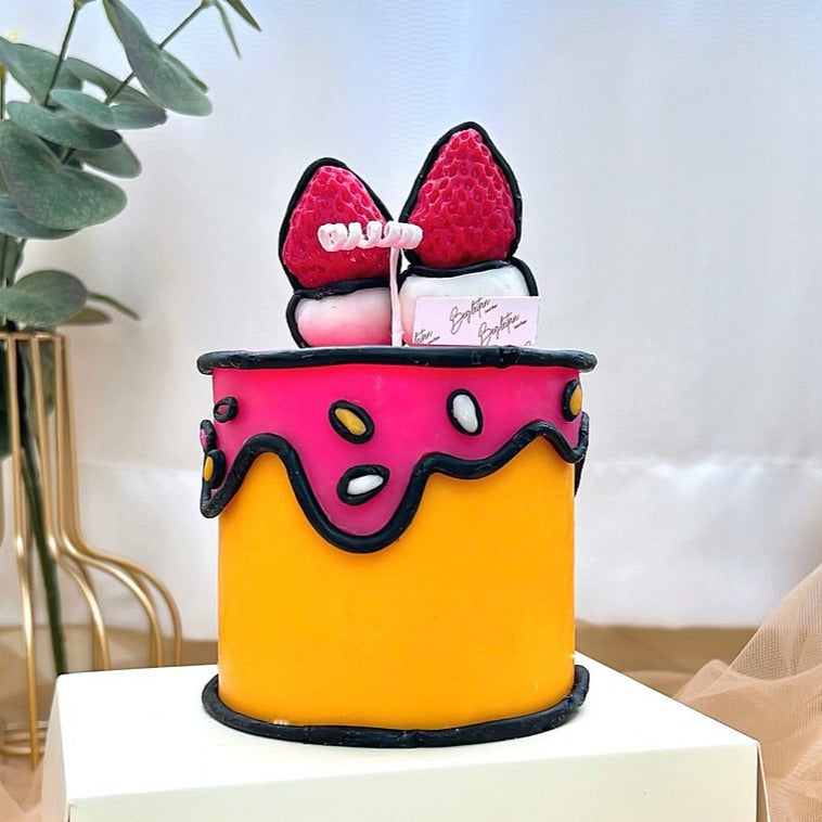 2D手繪風蛋糕造型香氛蠟燭 - 高彩度士多啤梨款