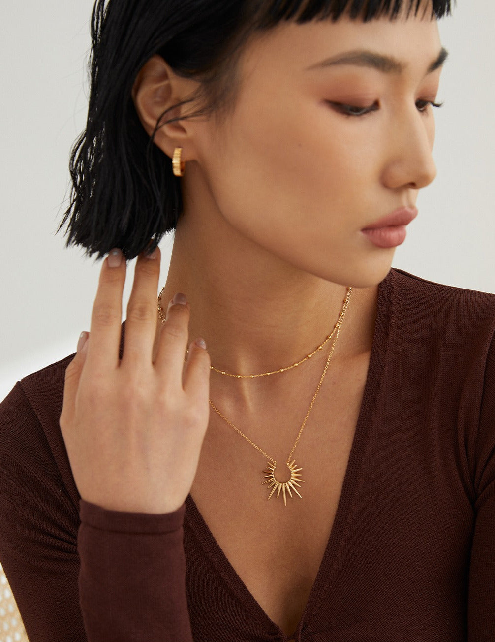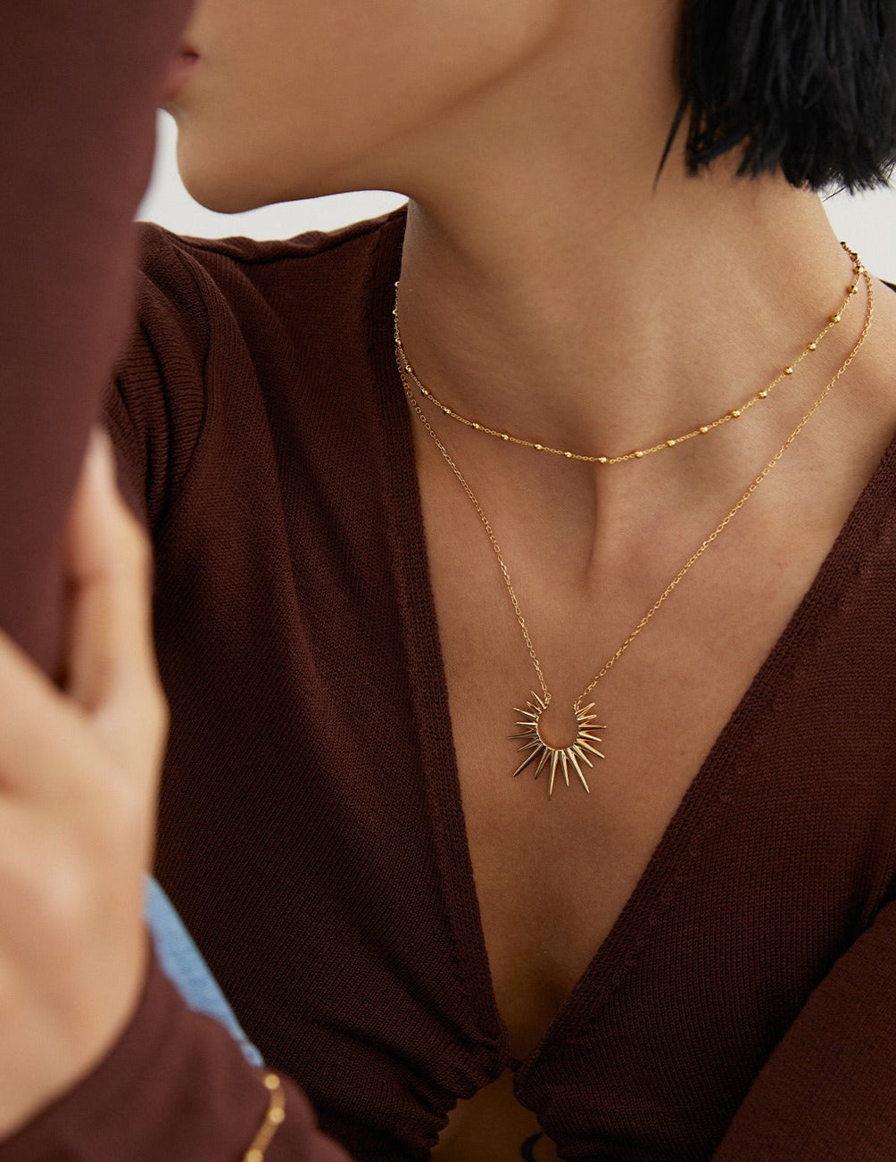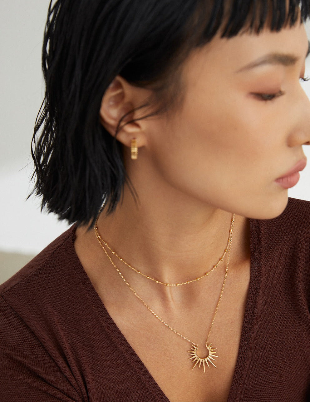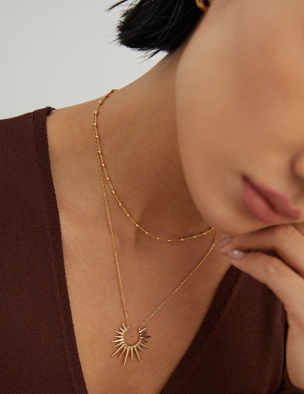 Moolit Treasure 簡約頸鍊,提升您的日常造型。這款簡約的項鍊採用優質 925 純銀打造,並鍍以璀璨金箔,飾有醒的旭日形吊墜,從各個角度捕捉光芒,令人矚目。項鍊總長 40 厘米,另加 6 厘米延長鏈,可輕鬆打造百搭造型,無論是疊戴還是單獨佩戴。無論您是正裝還是休閒裝,這款項鍊都能為任何造型增添一抹宇宙魅力。