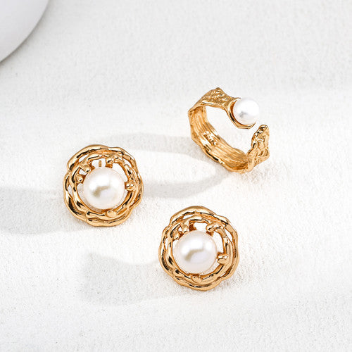這款錘紋 S925 純銀戒指鑲嵌一顆約 7 毫米的亮澤天然珍珠,更顯您的優雅氣質。戒指提供復古金和鉑金兩種材質,可調節開口設計,完美貼合美碼 7.25 碼。這款精緻配件將雋永工藝與低調現代感巧妙融合,為任何精緻造型增添一抹自然之美。