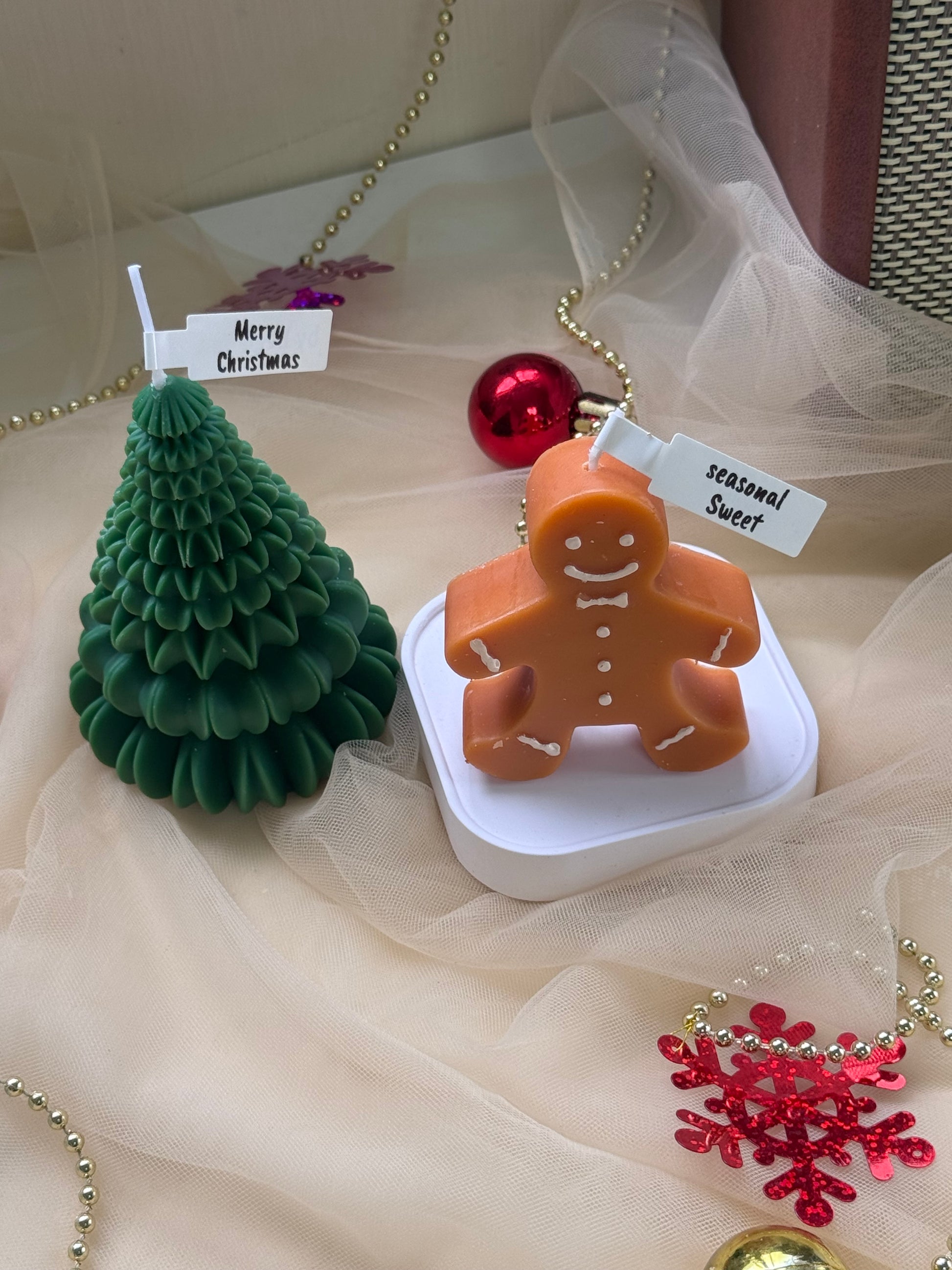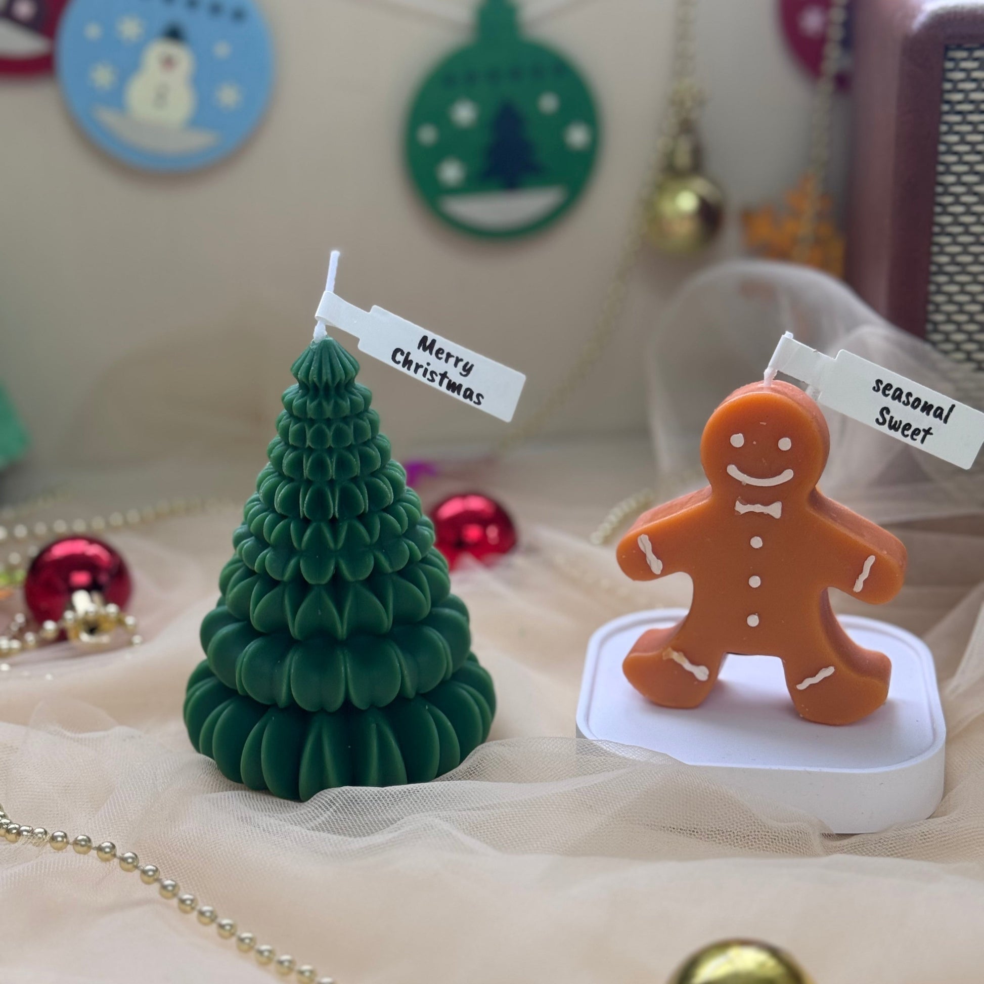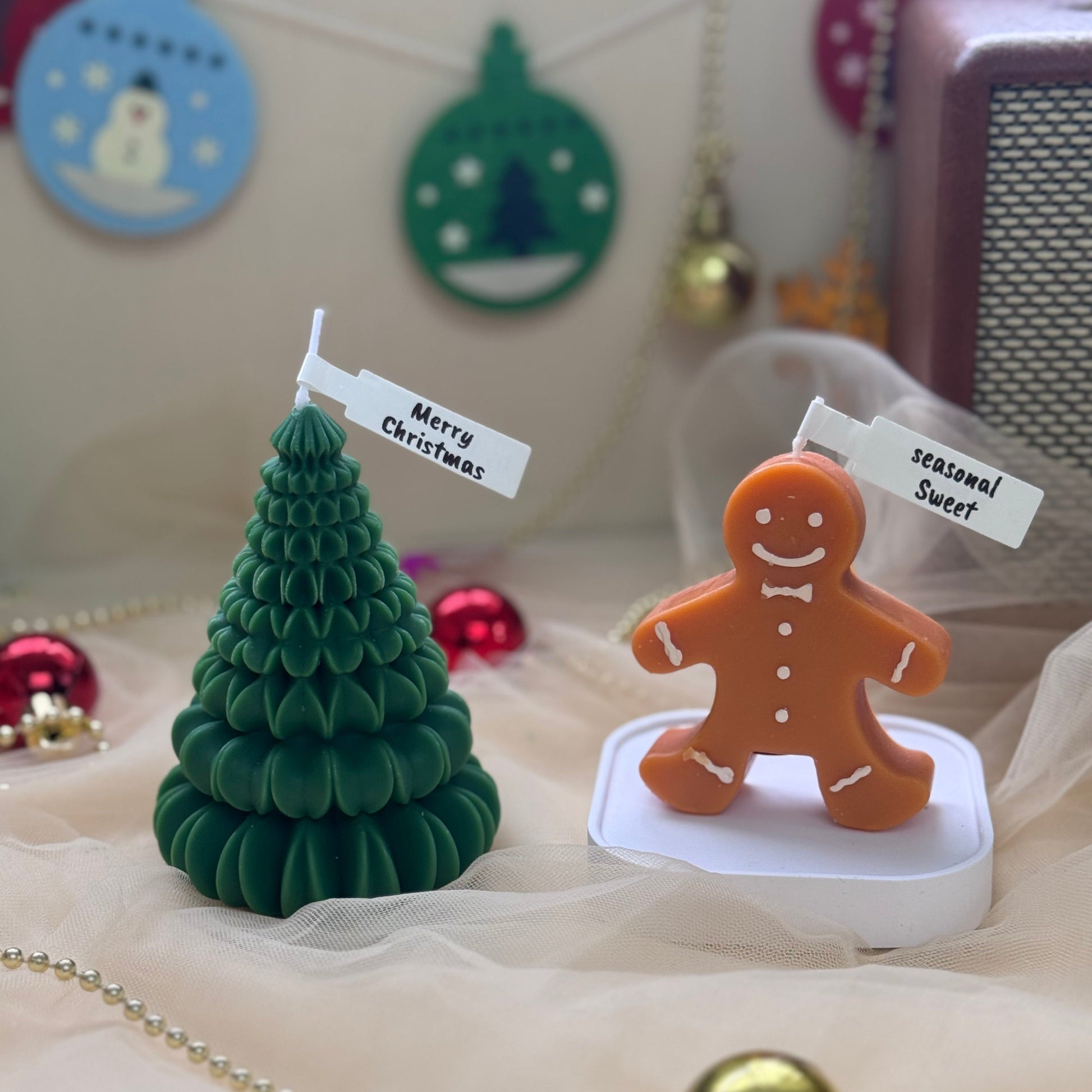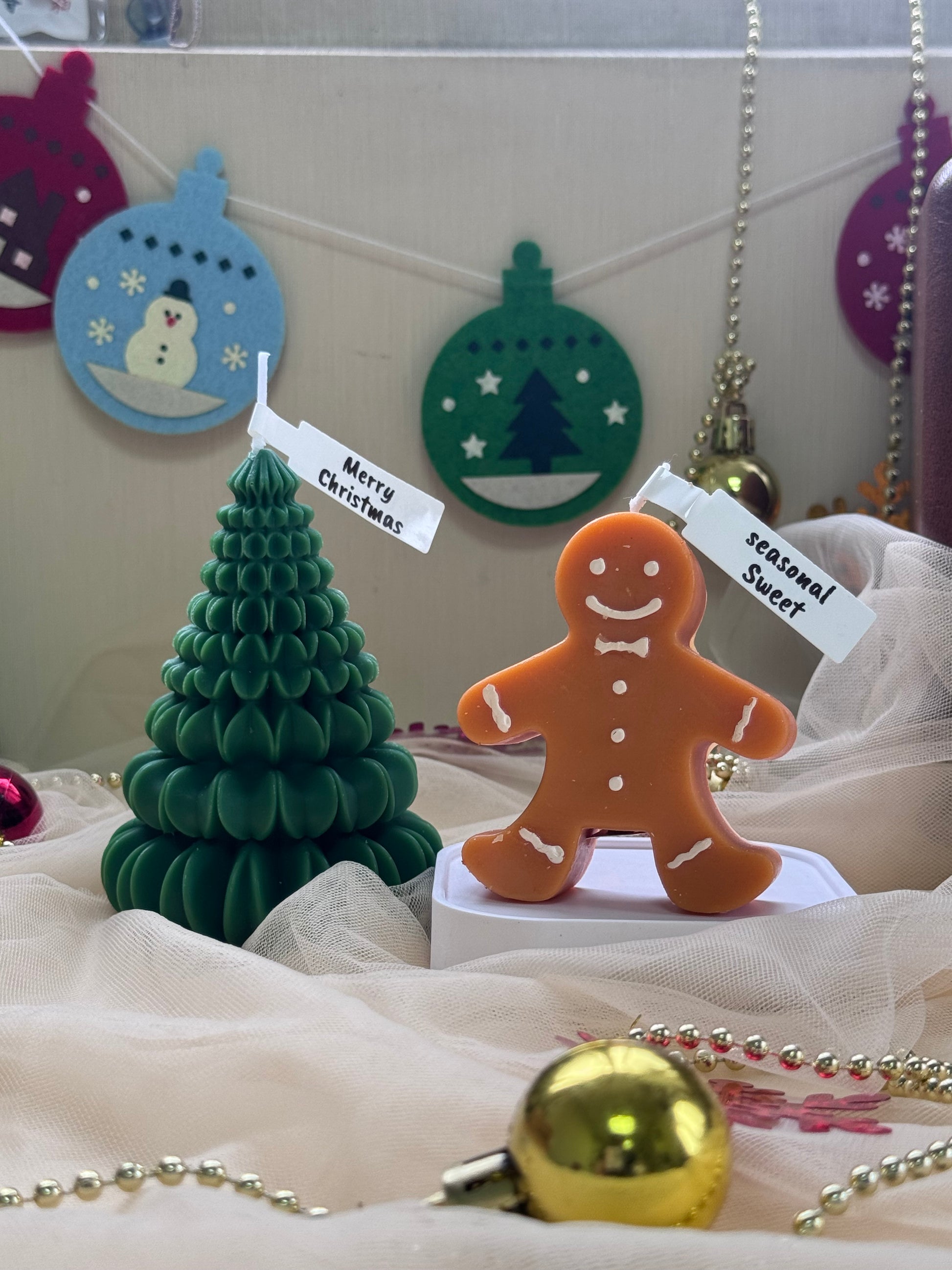 可愛的薑餅香氛蠟燭和聖誕樹是聖誕節慶祝活動的理想禮物或裝飾品