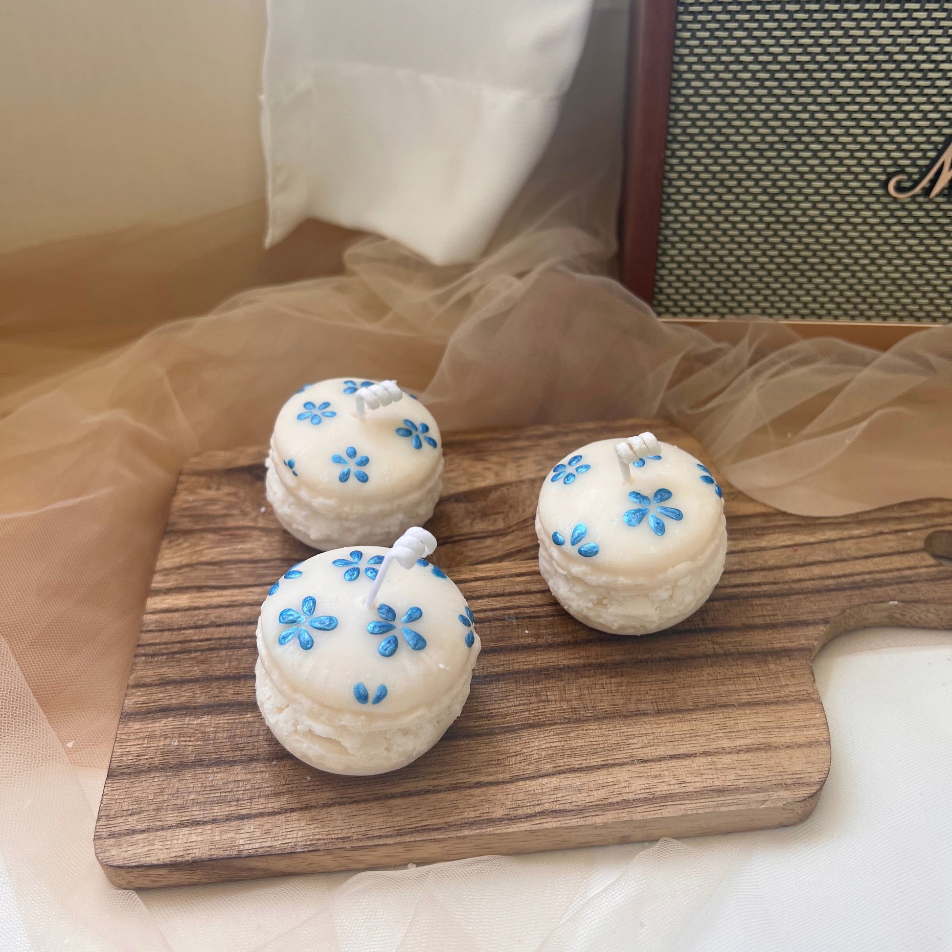 成品: 2個馬卡龍蠟燭(直徑約 5厘米!) 及 1個水泥爉燭托盤