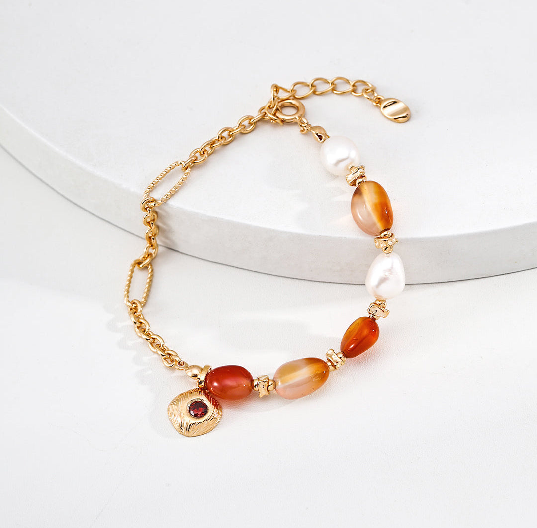Moonlit Treasure硃砂祝福手鍊 – S925 銀飾紅瑪瑙、珍珠和鋯石