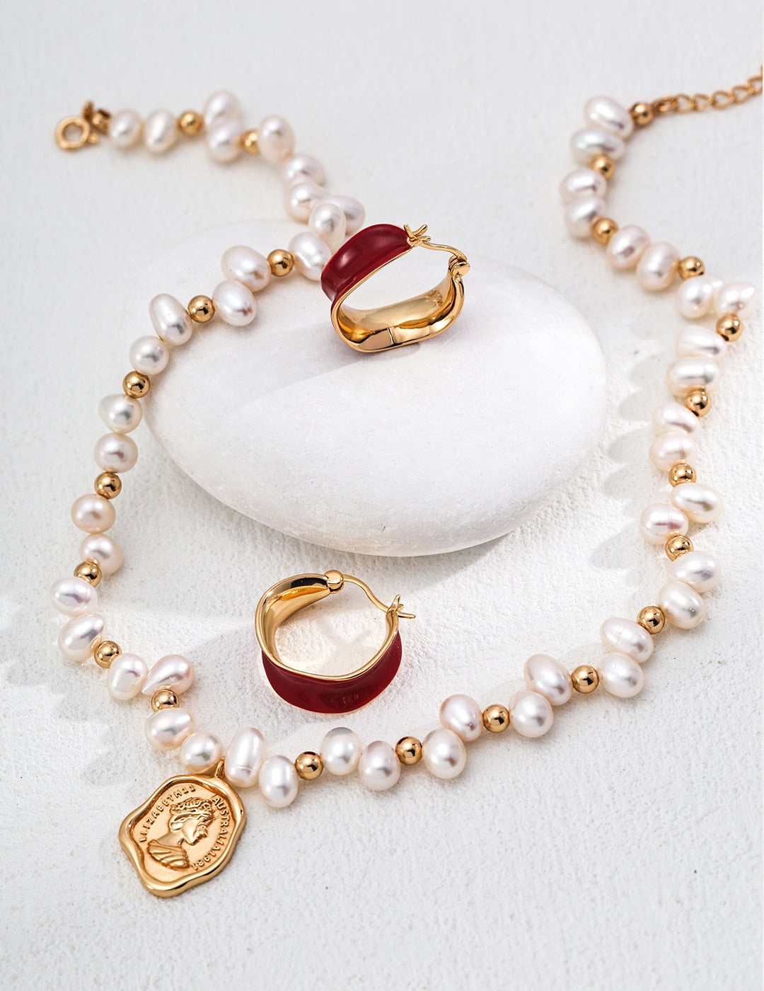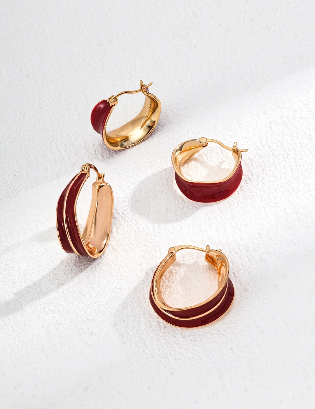 這些優雅的耳環採用高品質 925 銀製成,並具有醒目的紅色琺瑯飾面。復古金色增添了永恆的精緻感,使其適合任何場合。它們高約 2 厘米,寬約 1 厘米,外觀時尚低調,適合任何風格。