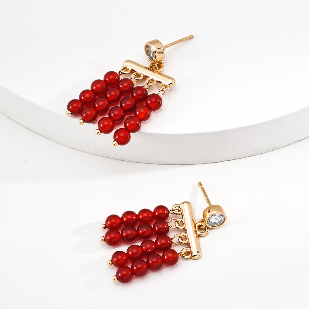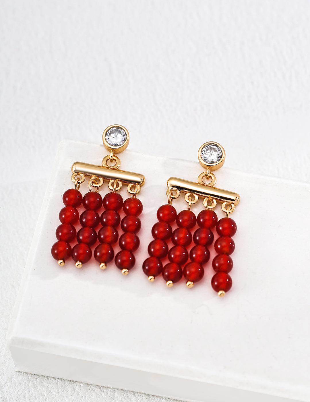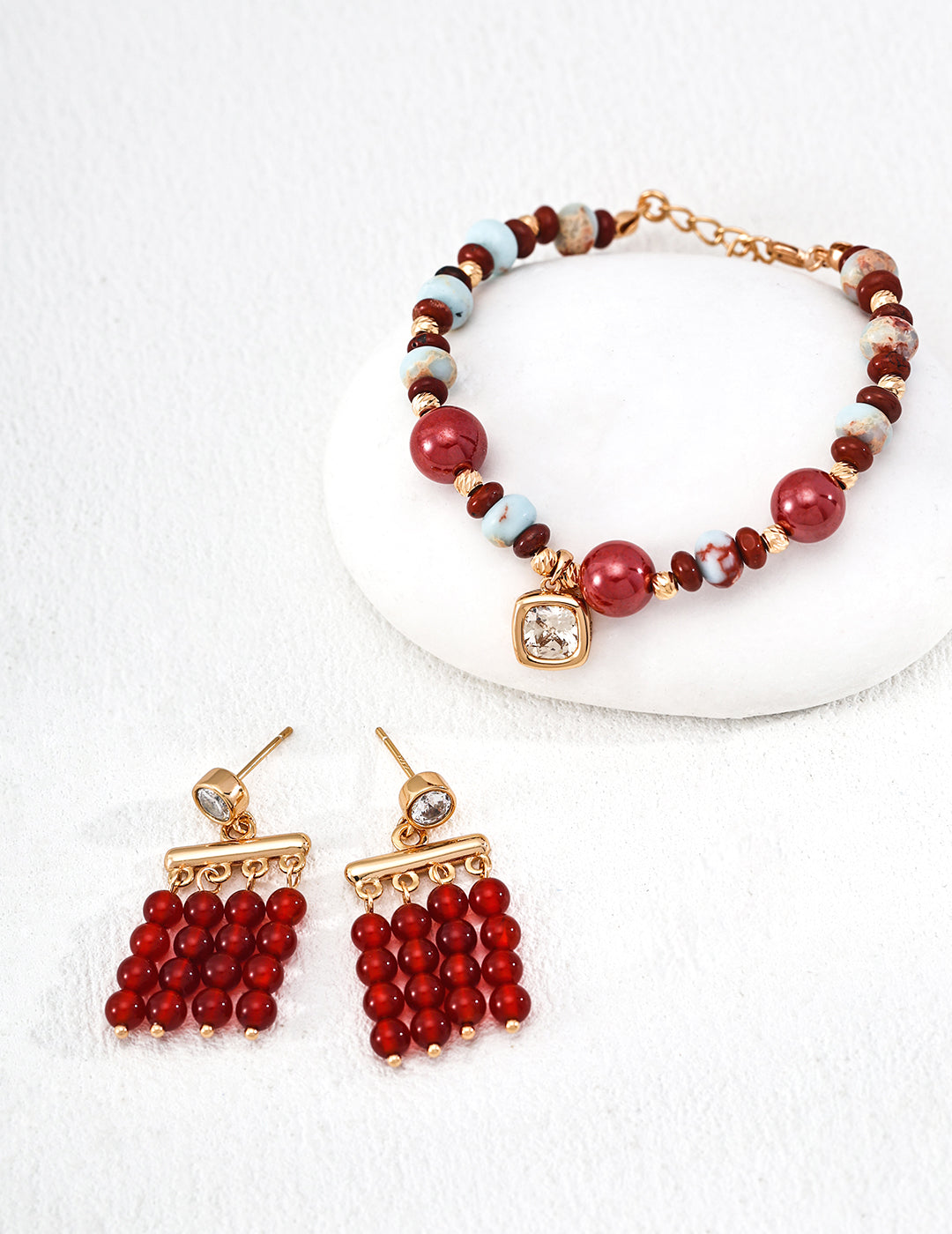 以S925純銀精製,搭配溫潤鮮豔的紅瑪瑙珠與復古金色框架,設計簡約卻不失典雅。紅瑪瑙象徵溫暖與活力,展現永恆的魅力。輕盈舒適,適合日常佩戴,也能在聚會或約會中成為亮點。這是一款兼具文化寓意與現代風格的精緻飾品。