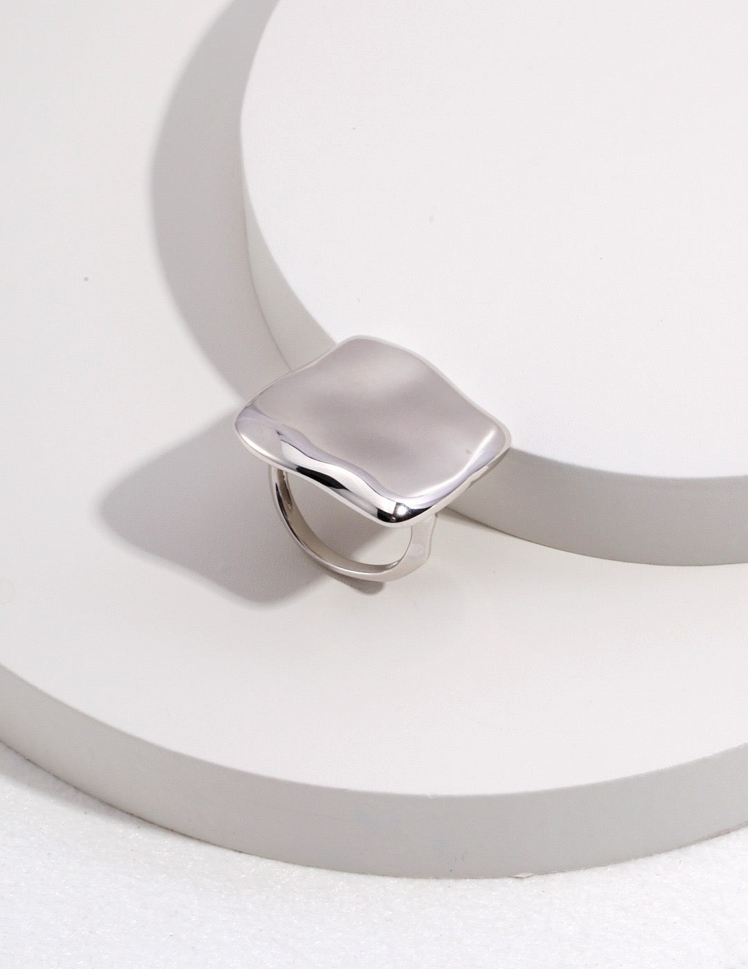 誇張的大面積拋光面,出色的拋光工藝,讓簡單的戒指散發出非凡氣質。凹凸的表面、流動的光澤,彰顯高端的質感。