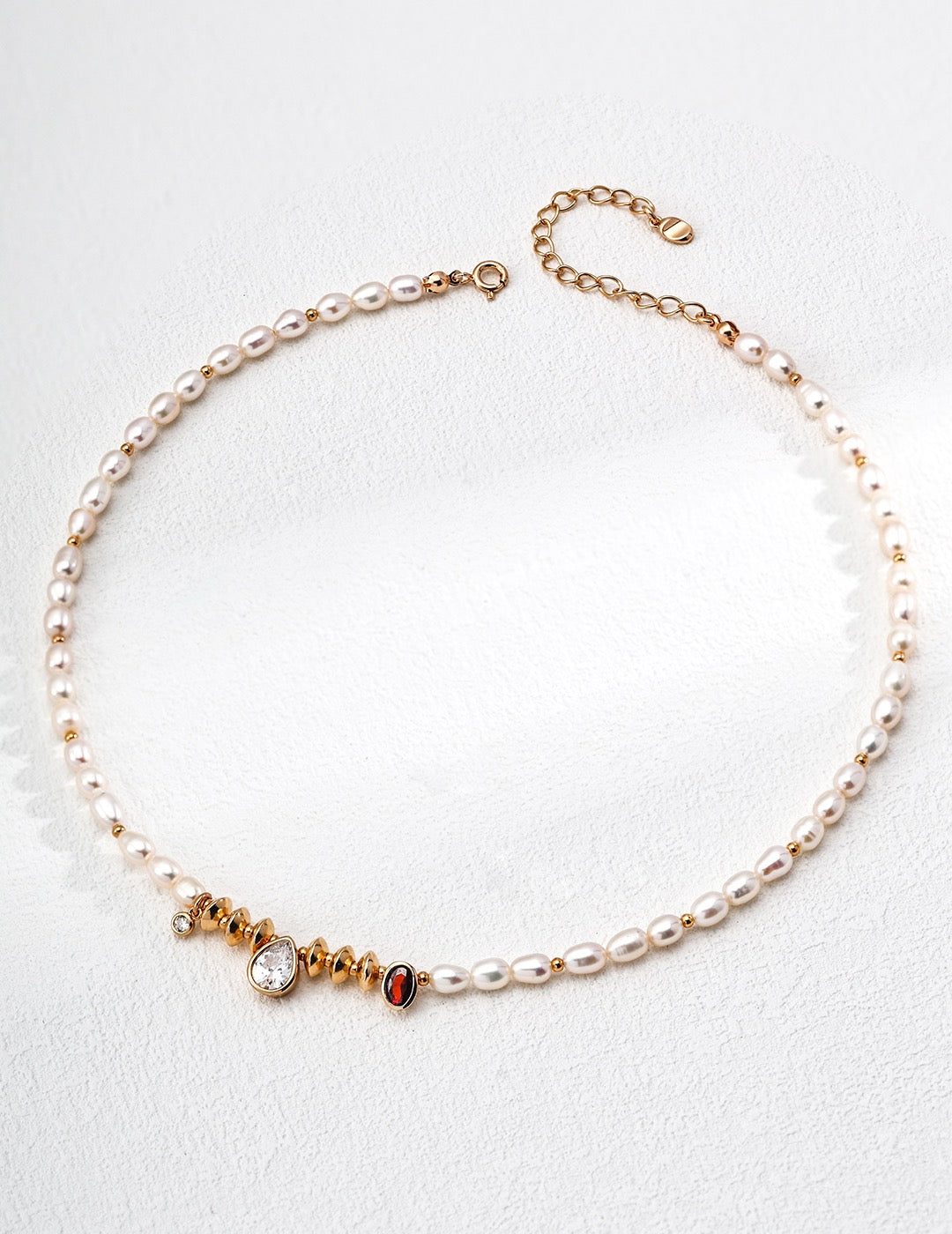 「復古優雅」S925純銀天然珍珠及鋯石頸鍊 – 可調式簡約法式分層飾品